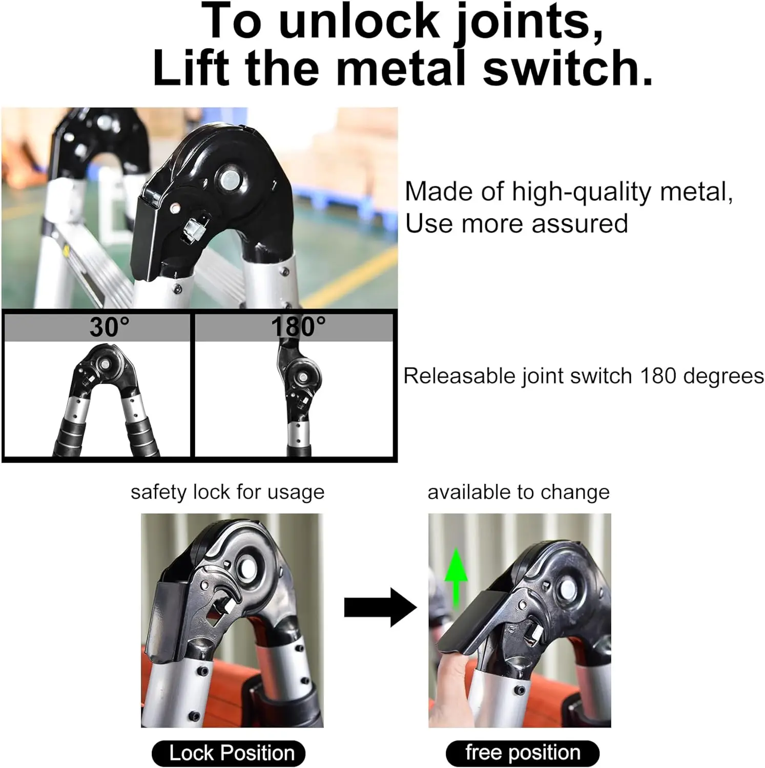 - 【Safety & Durable Aluminum Ladder】folding extension ladder is made of high quality thickened aluminum,designed with industrial-grade height-locking latches and solid rubber anti-slip feet with support bar,avoiding bumping and falling off.surface of aluminium is oxidized makes it resistant to,rust and corrosion ensure a long service life.loading capacity is up to 330lbs.
