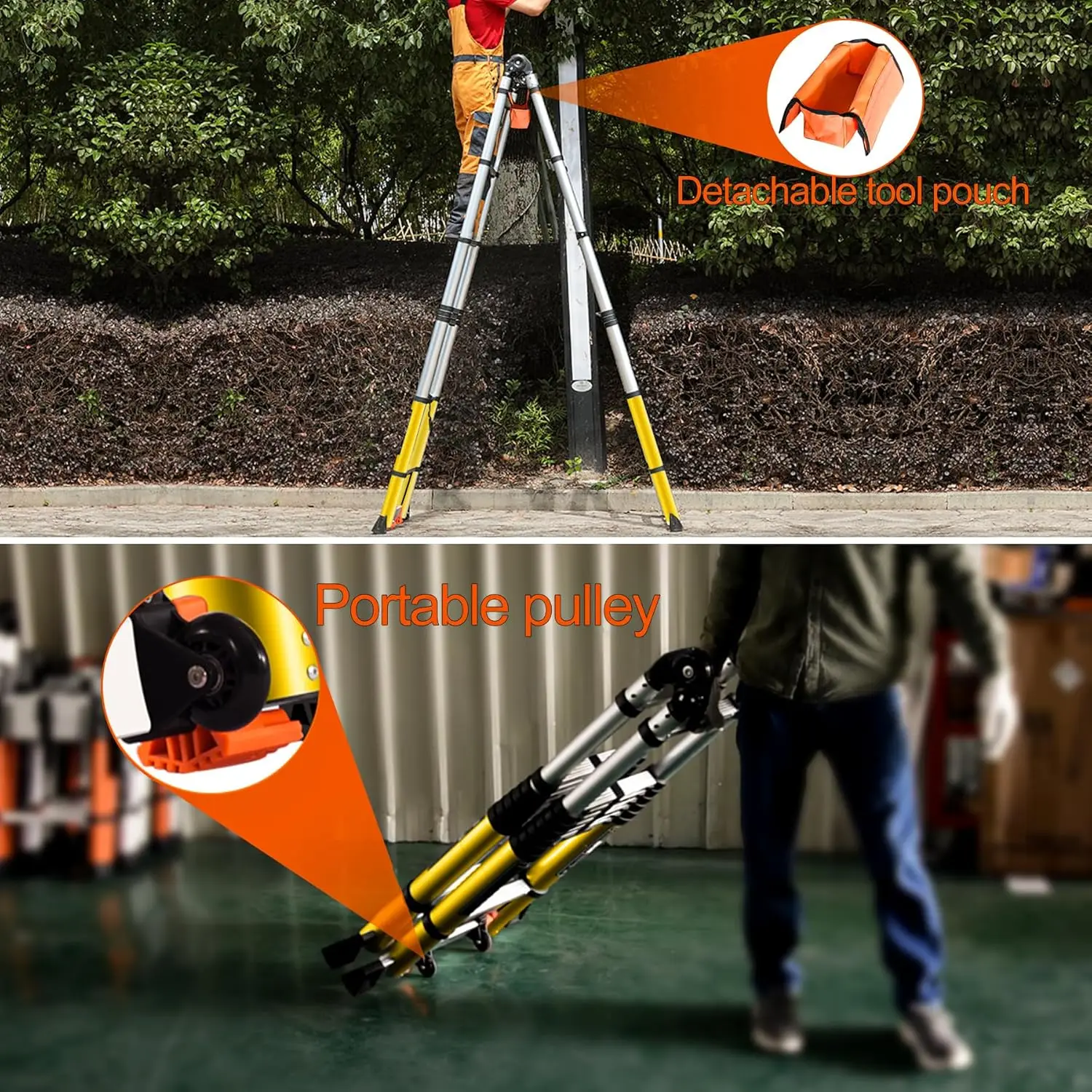 - 【Heavy Duty,Compact & Portable】A Frame telescoping ladder can be folded to minimum size of 18.5*39 inch,with moverable wheels,easy to transport and store(Note: it weighs at 50lbs, requiring carry).Great helper for both indoor household use and outdoor activities.