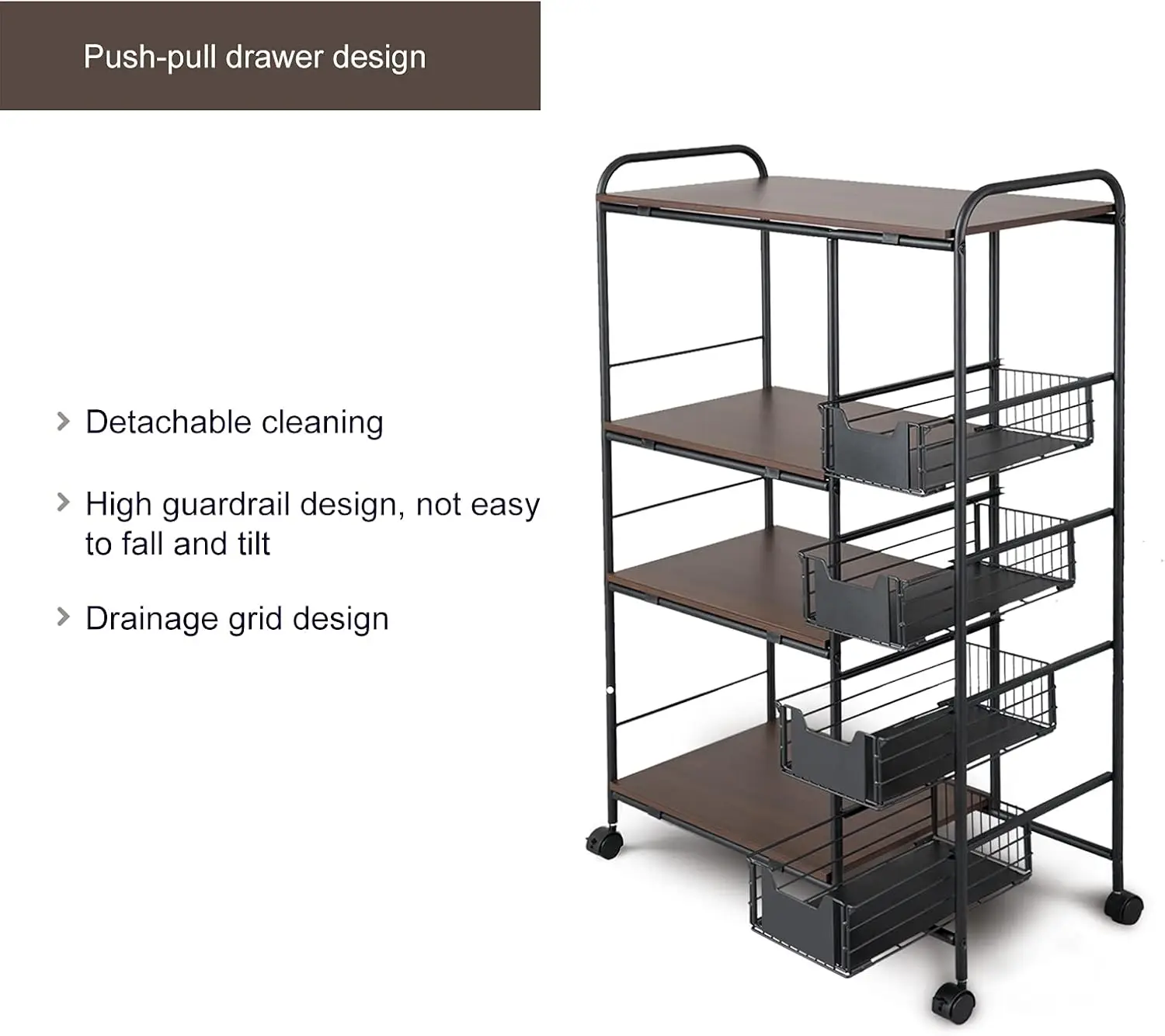- 【Easy to Use】: Easy to assemble, saving space, well-organized, movable, also as a kitchen storage shelf, coffee stand, rolling storage cart, spice rack organizer.